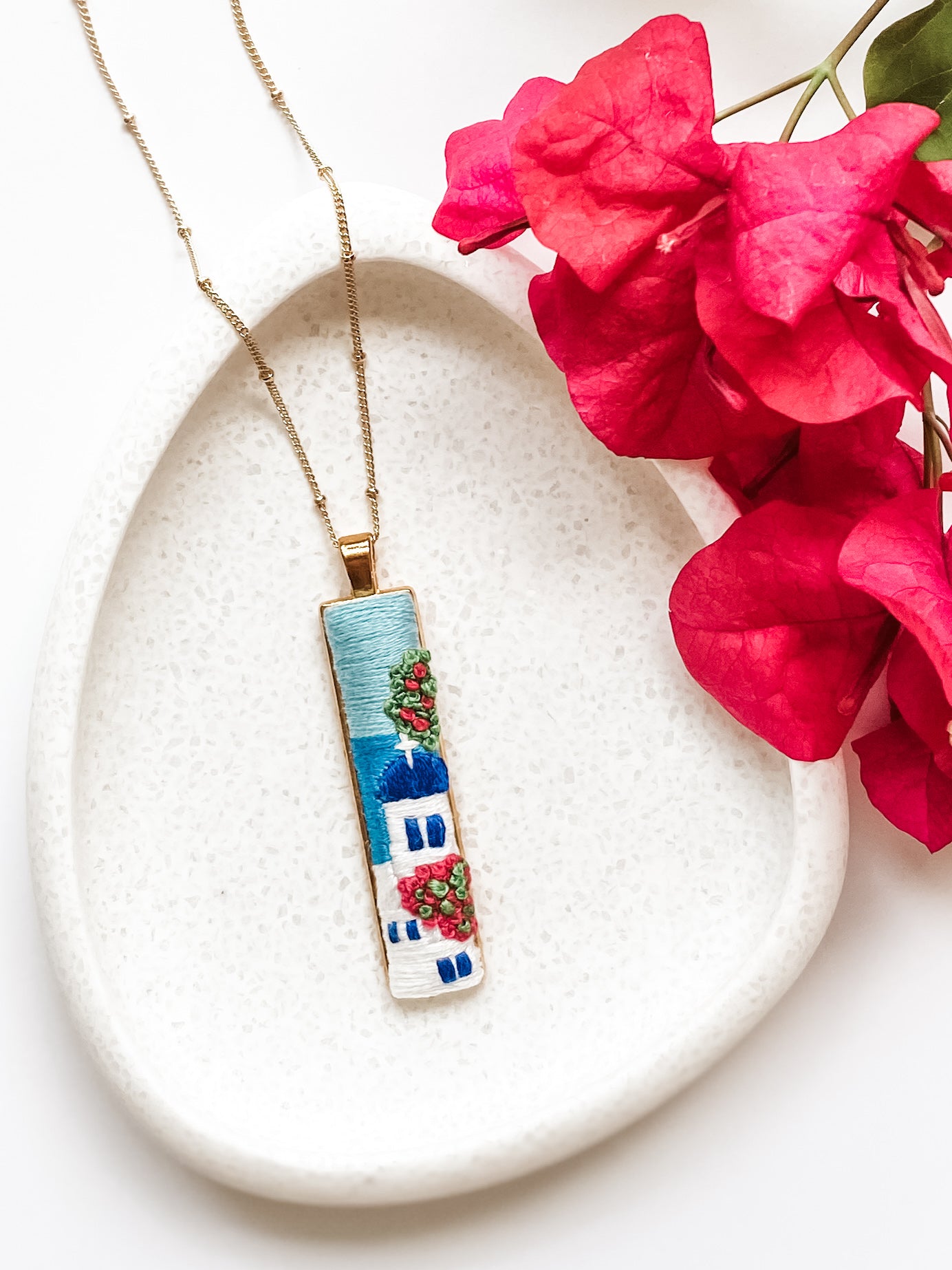 Discover three effortless ways to style the Santorini Collection - hand-embroidered jewellery inspired by the blue domes and bright bougainvillea of Greece. Each look brings a touch of wearable art...